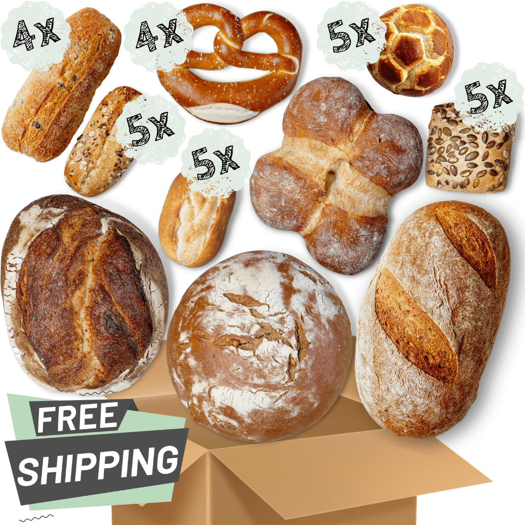 Picknick planned with friends? Family invited to dinner? Preparing brunch for your loved ones? Or just a filled freezer with delicious & healthy bread? Our Germans' Favorites Large Box contains the most loved 10 products. It is the perfect choice for any occasion to surprise anyone with homemade fresh bread that comes fresh and warm within few minutes from you oven.